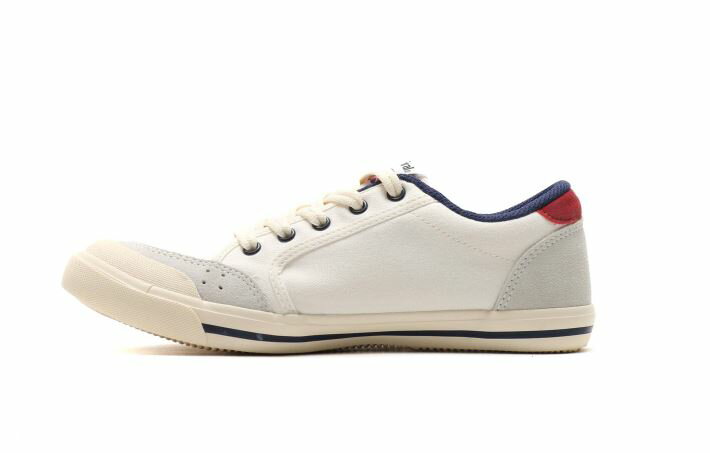 履きやすいシルエットにバリエーションのとんだ デザインが大人気の「inomer」(イノマー) その中でもベーシックで不動な人気を誇る のが、この「アイボリー/ネービー/レッド」 とにかくデニムとの相性がバツグンで、 足元を爽やかにしてくれます。