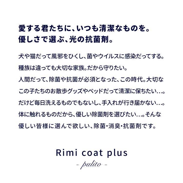 【検索ワード】抗ウィルス リミコートプラス プリート Pulito 光触媒を使った安心安全な抗菌消臭剤 除菌 抗菌 強力消臭 安全安心の消臭剤 ピッコロカーネ ペット用スプレー ペット 臭い piccolocane 臭いが消える 除菌効果 分解 ウイルス 菌 災害対策 衛生管理 光触媒 消臭剤 安心 安全 エビデンスあり 犬 猫 ペットカート ペットキャリー キャリーバッグ ハウス キャットタワー おもちゃ 赤ちゃんがいる家庭でも 効果持続 長持ち 抗菌効果 除菌効果 コスパ コストパフォーマンス リミコート リミコートプラスプリート ペット用消臭剤 アルコール不使用 アルコール 界面活性剤不使用 界面活性剤 酸化チタン 主成分酸化チタン